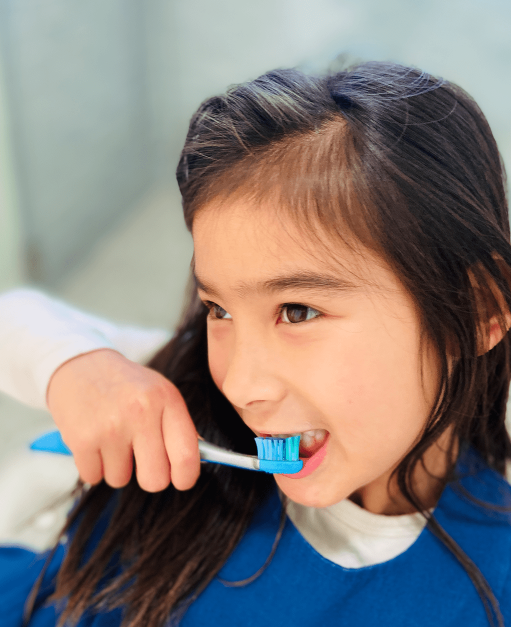 The type of toothbrush is less important than being consistent – brushing should be done twice a day: once in the morning and once in the evening right before bed. If your child drinks anything other than water before going to bed, then you must brush and floss your child’s teeth again!